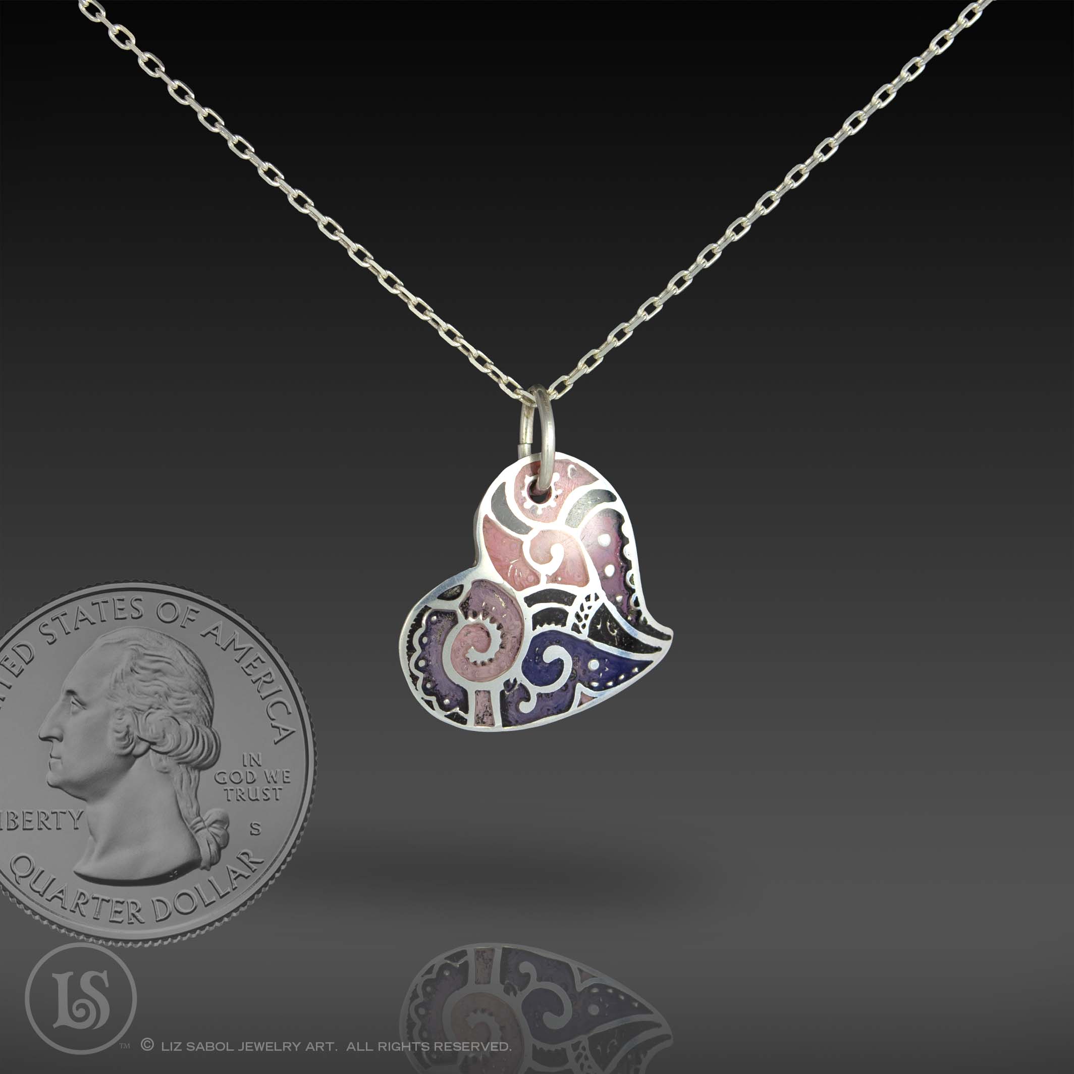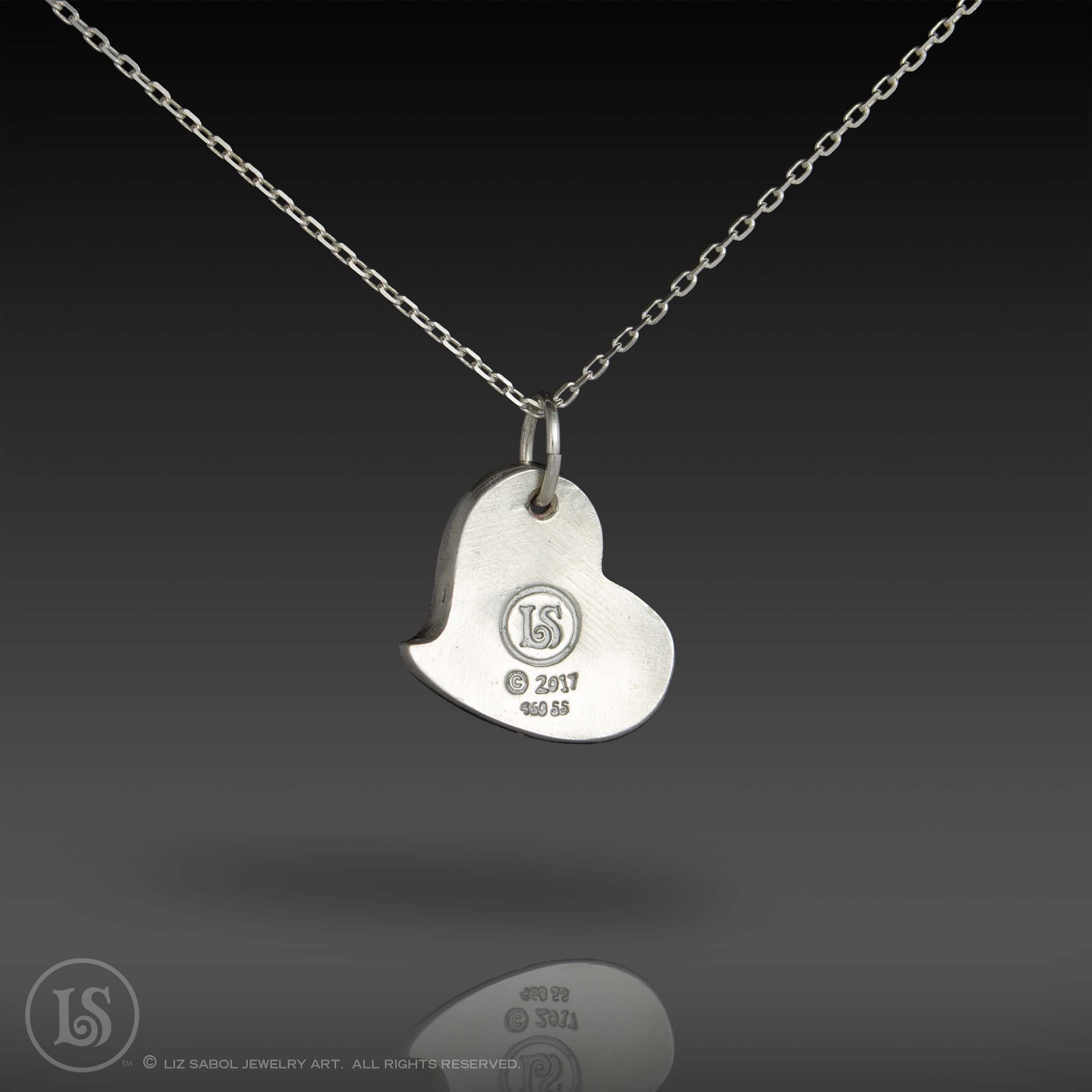This whimsical heart-shaped charm was inspired my good friend's daughter. It is hand-crafted in 960 sterling metal clay, and hand-painted.