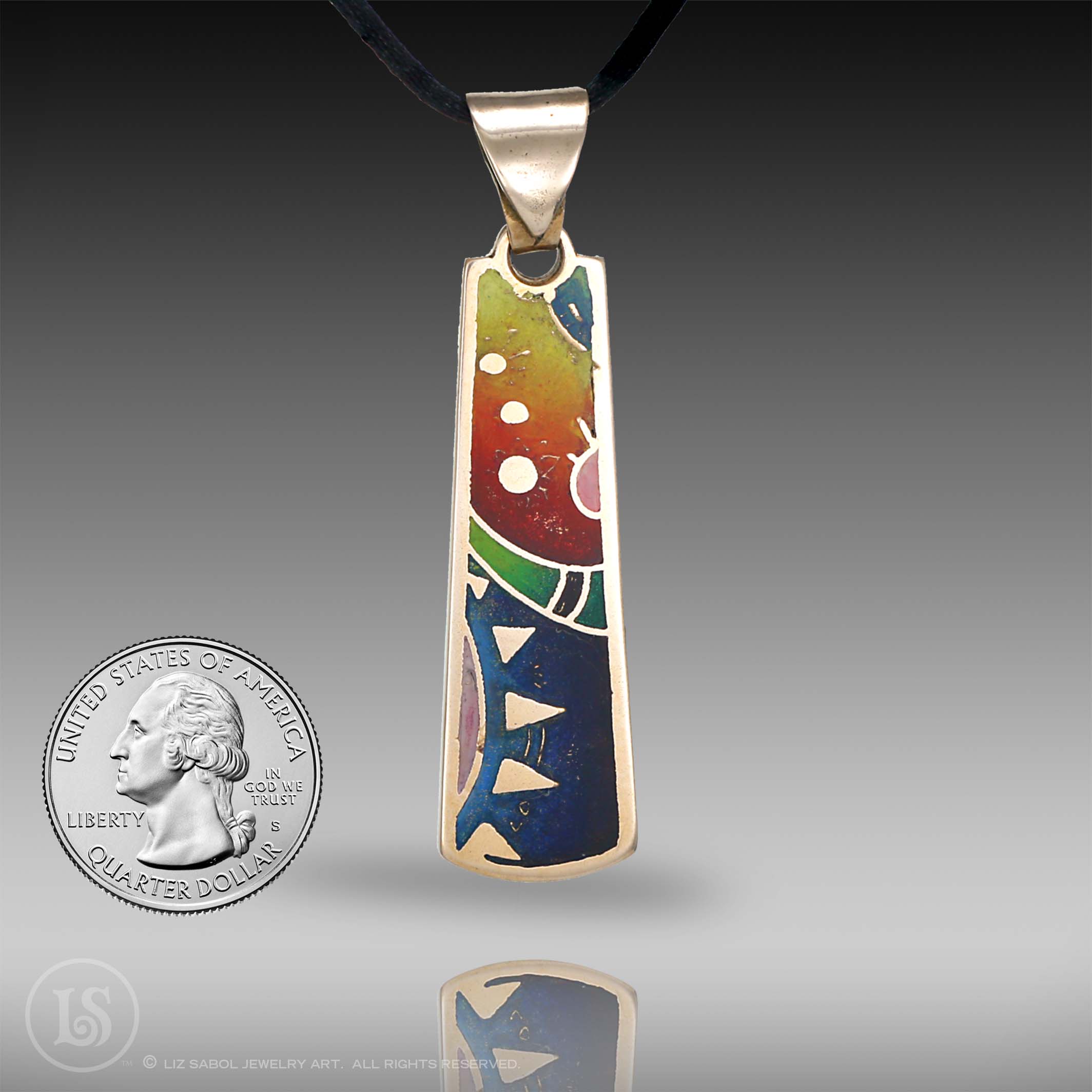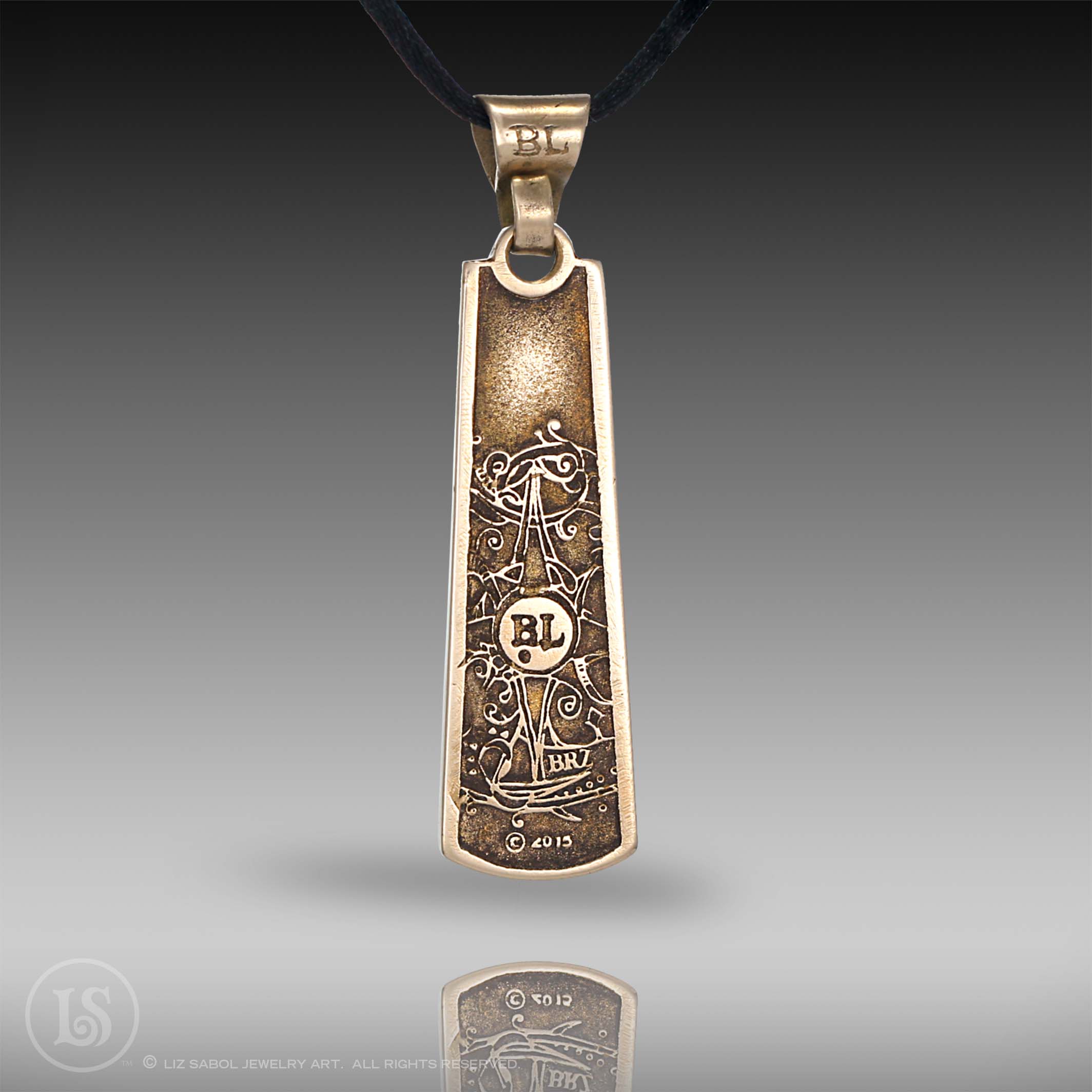 This bronze pendant is hand-crafted in bronze metal clay, hand-painted and filled with resin. The resin is sanded flush and re-polished.