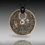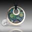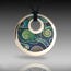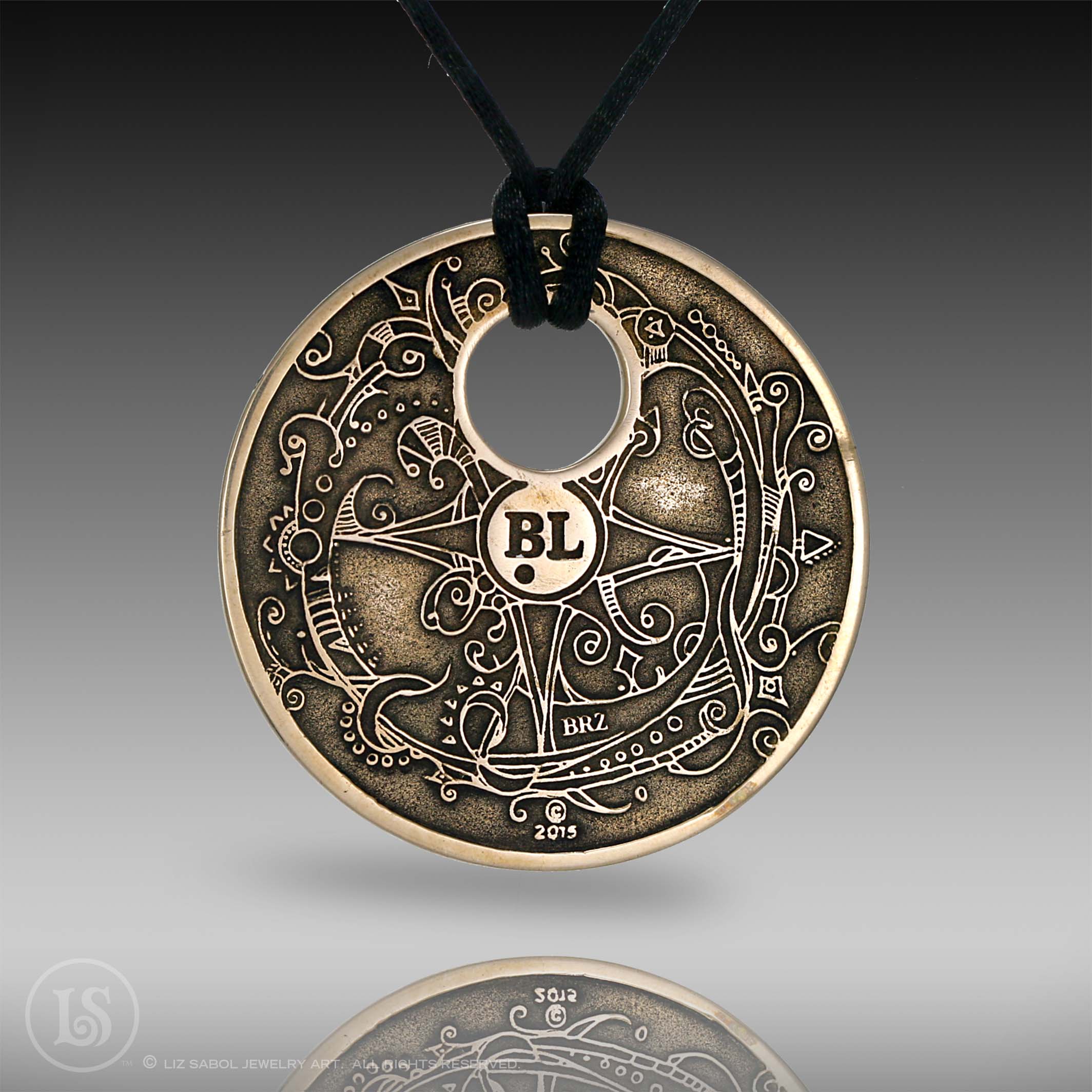 This pendant is hand-crafted in bronze metal clay, hand-painted and filled with resin. The resin is sanded flush and re-polished.