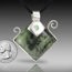 This pendant was inspired by the large central square prehnite stone, and has a unique pierced back. This one-of-a-kind pendant is crafted in sterling silver and gemstones - prehnite (n) and Chinese Chrysoprase (n).