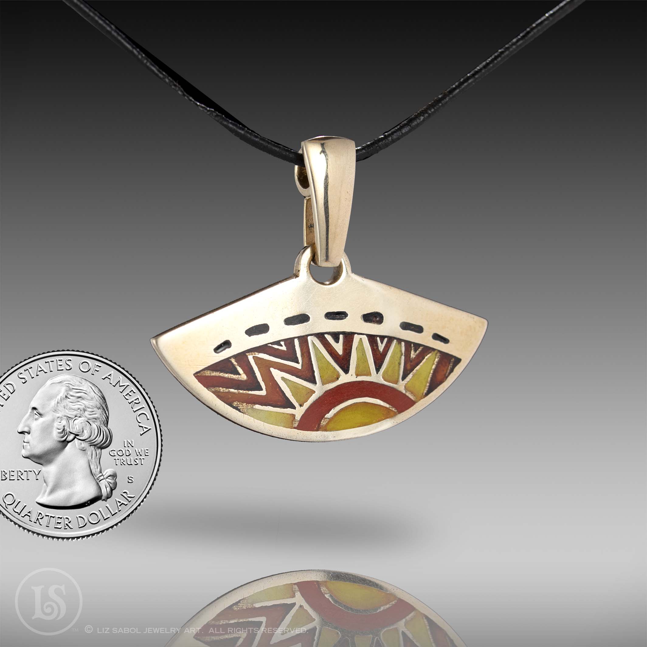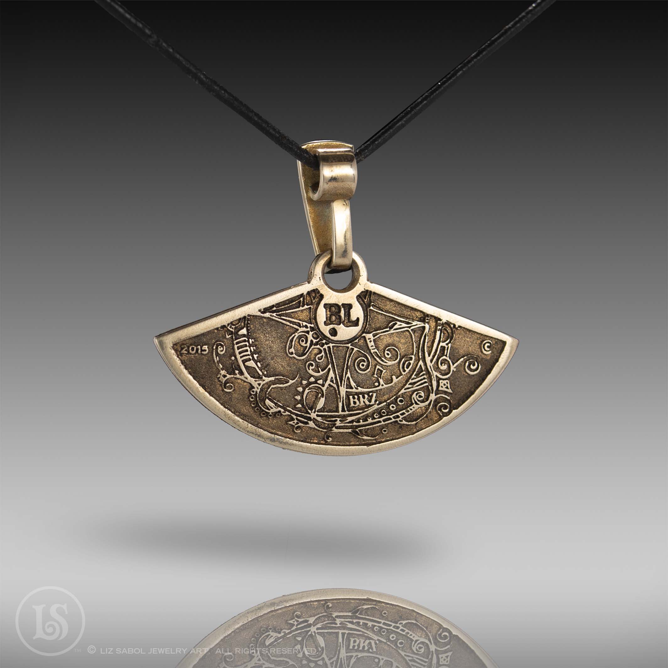 This bronze pendant is hand-crafted in bronze metal clay, hand-painted and filled with resin. The resin is sanded flush and re-polished. Chain/cord not included.
