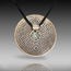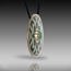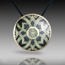 Handmade, bronze metal clay pendant. Cold-enamel Champleve. Hand-painted, and resin. The stone is Prehnite. Fits cord and chains up to 2.75mm. Cord not included.