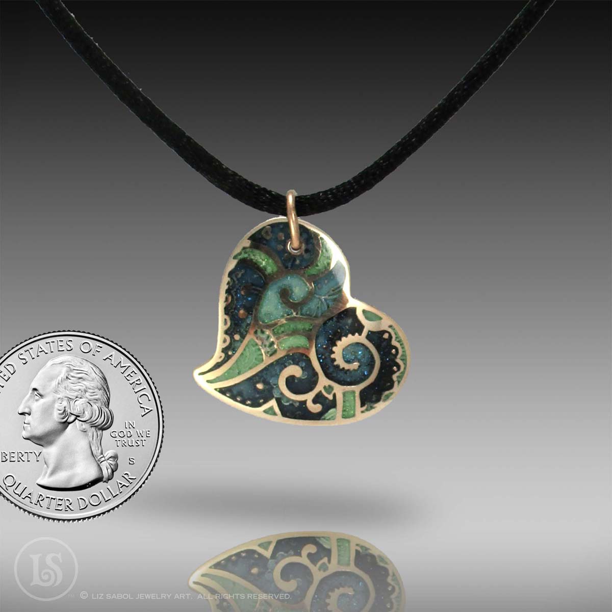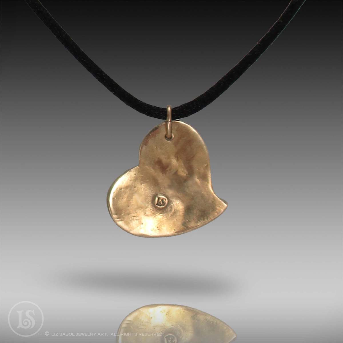This whimsical heart-shaped pendant was inspired my good friend's daughter. It is hand-crafted in bronze metal clay, hand-painted and filled with