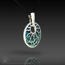 This pendant is hand-crafted in 960 sterling silver metal clay, hand-painted and filled with resin.  The resin is sanded flush and re-polished.   The edge is decorated with the symbols of the planets and astrology.