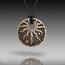 Solid copper pendant with my Celestial Sun design in deep relief. Patina applied for contrast. 18" Leather cord included. This is un-sealed copper, and will tarnish over time. Polishing cloth is included. Cleaning this pendant in any chemical cleaning liquid will remove the patina.