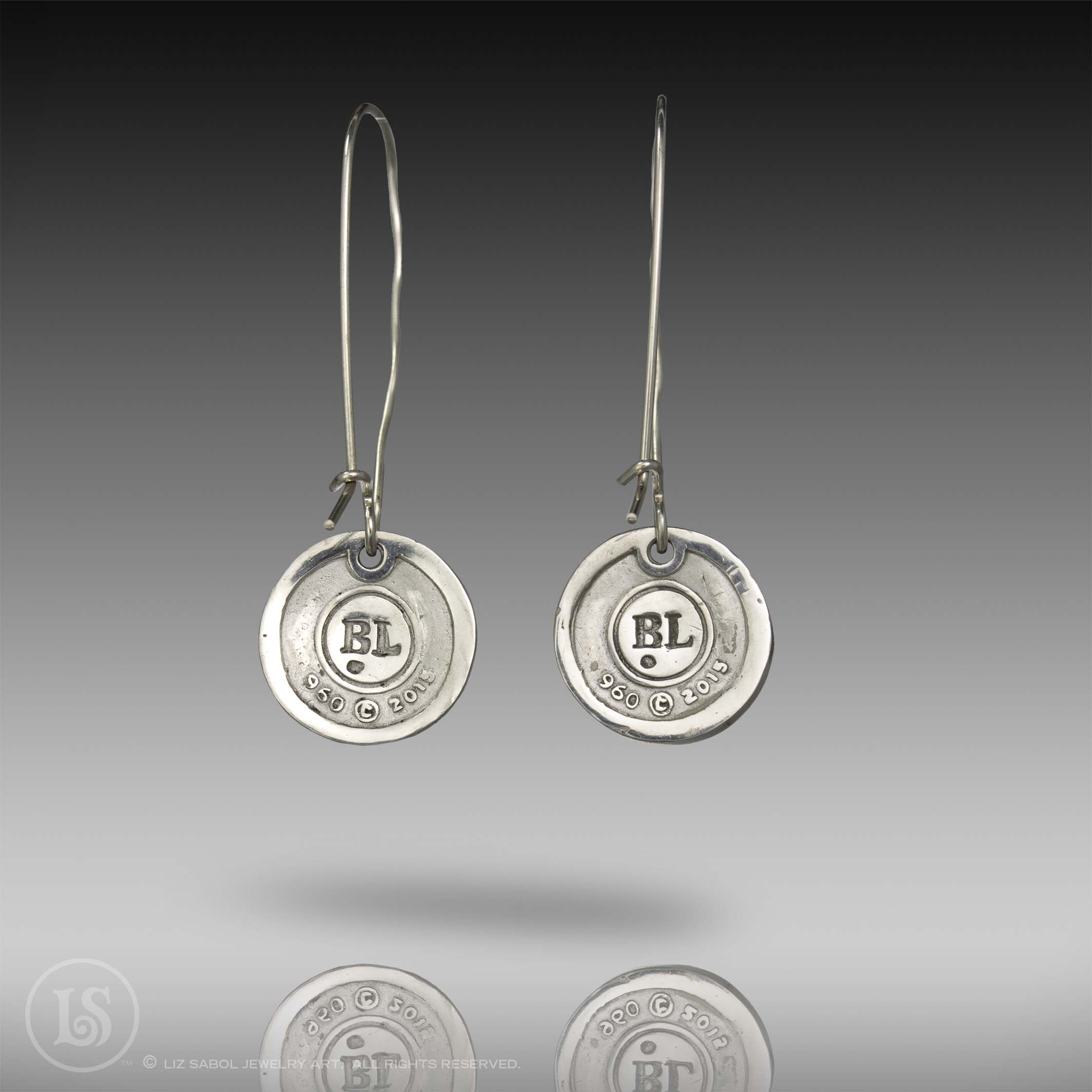 These earrings are hand-crafted in 960 sterling silver metal clay, hand-painted and filled with resin. The resin is sanded flush and re-polished.